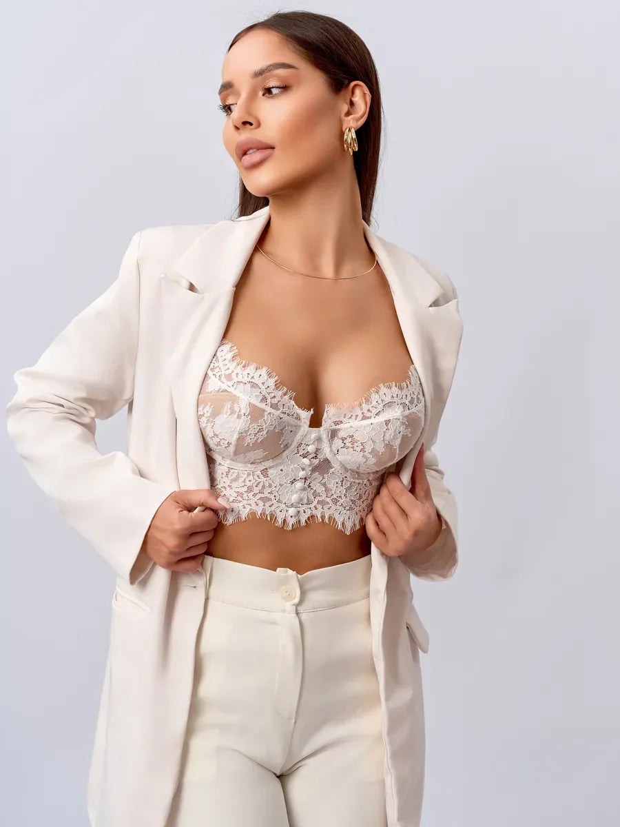 Cierre frontal con botones decorativos. - Ideal para combinar con bragas o tangas de encaje a juego.